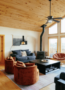 A spacious deck with seating provide space to gather with others or enjoy a quiet moment. Secluded seating spots tucked in around the property are a favorite for meditation and solace. The ceremonies will take place indoors surrounded in the majestic beauty of the natural surroundings.